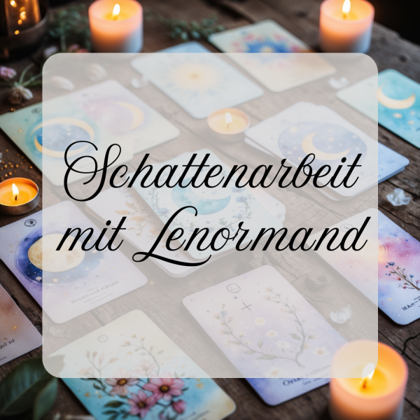 Wenn Du bereit bist, Dir selbst und Deinen verborgenen Anteilen zu begegnen, dann ist mein Workbook Schattenarbeit mit Lenormand und Tarotkarten Dein Begleiter auf dieser Reise. Auf 100 Seiten widmen wir uns 11 Schattenthemen mit Impulsen, Legemustern, Reflektionsfragen und Integrationsübungen. Begegne Dir selbst auf eine tiefgehende und transformierende Weise.